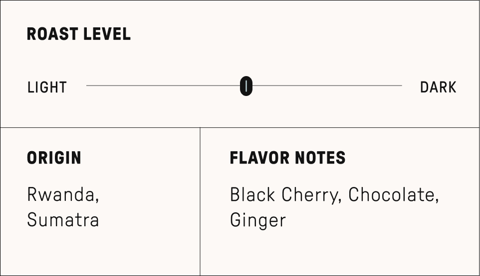 The Sumatra carries a low acidity along with earthy flavors, while the Rwandan counters with high-acidity and sweet citrus tones. Well-balanced brews from this blend prove that this odd couple is in perfect harmony.